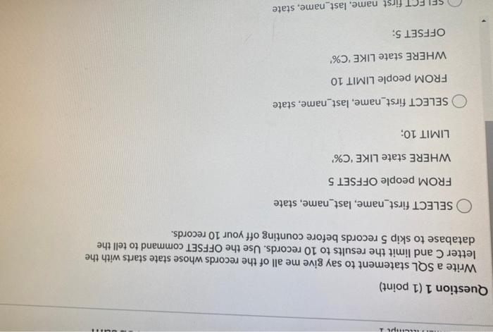 Solved Question 1 1 Point Write A Sql Statement To Say Chegg Com